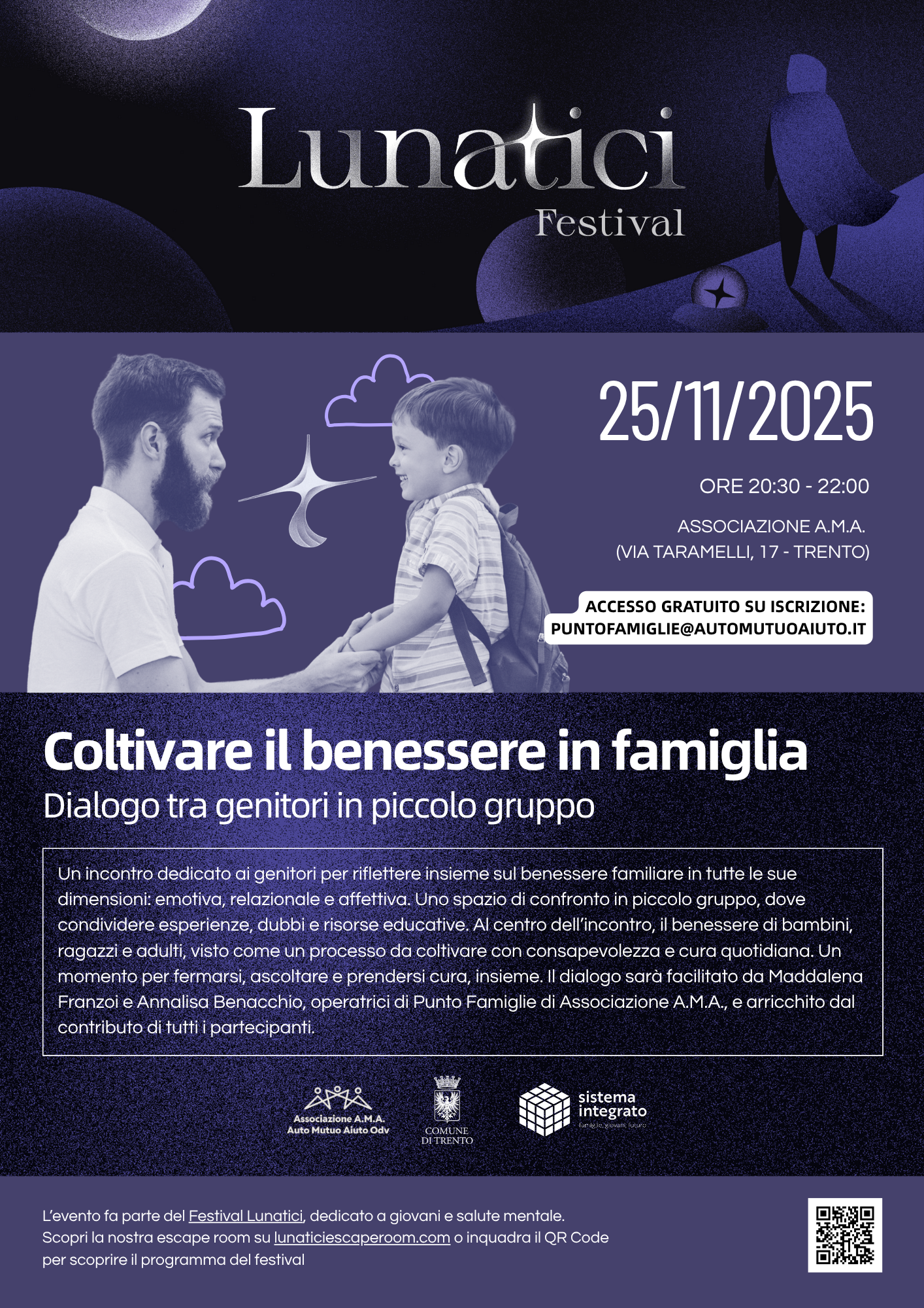 L’evento fa parte del Festival Lunatici, dedicato a giovani e salute mentale. Scopri la nostra escape room e il programma del festival su lunaticiescaperoom.com