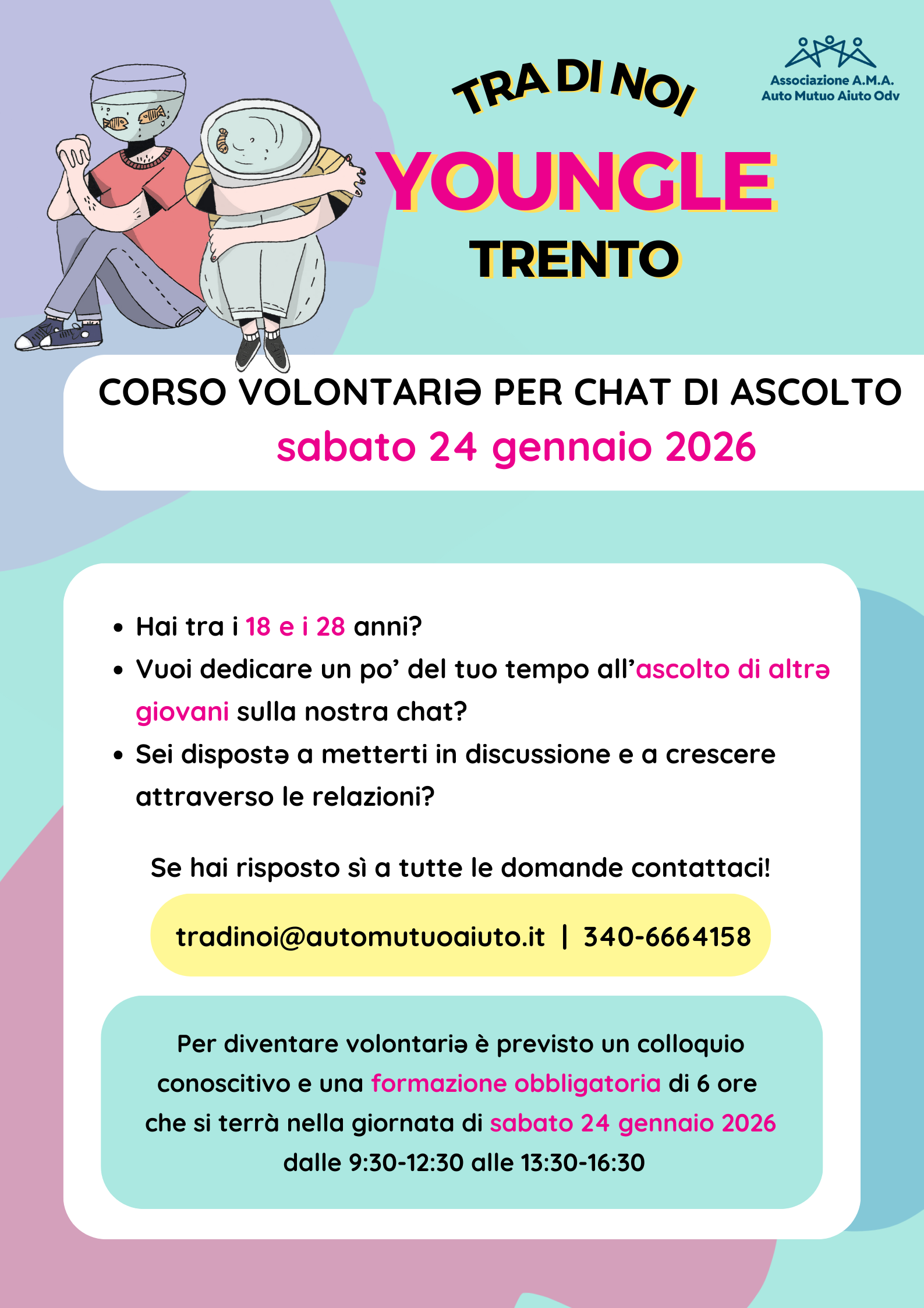 Youngle Trento cerca nuovi volontari! Hai tra i 18 e i 28 anni e ti piacerebbe dedicare un po’ del tuo tempo all’ascolto di altri giovani attraverso una chat di ascolto anonima e gratuita?