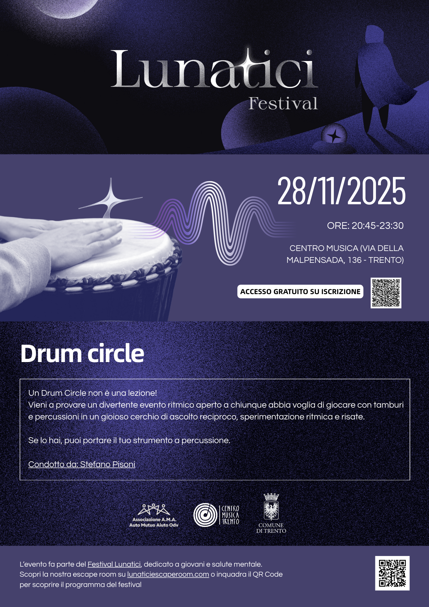 Se vuoi, porta con te il tuo strumento a percussione. Conduce: Stefano Pisoni