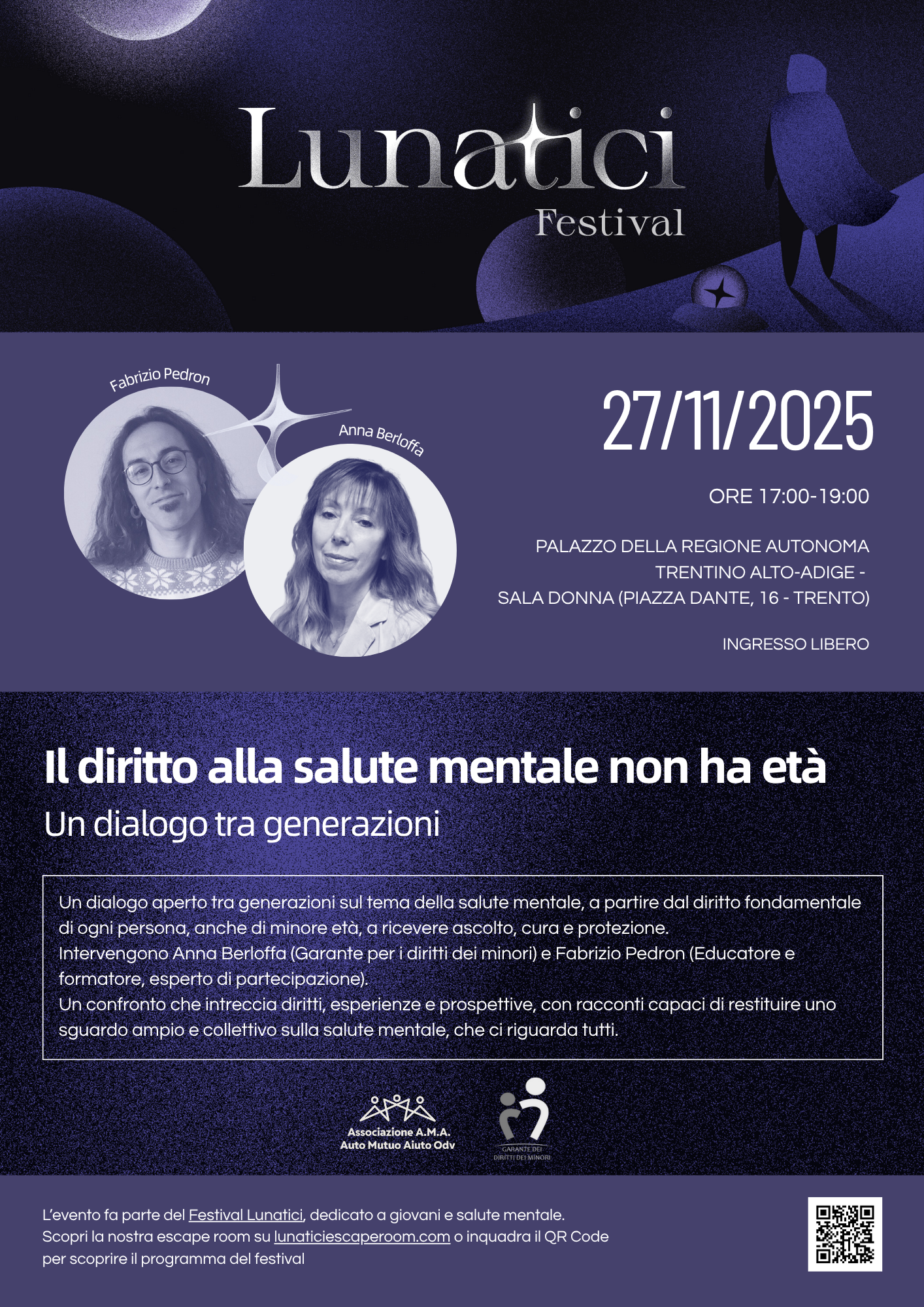Un dialogo aperto tra generazioni sul tema della salute mentale, a partire dal diritto fondamentale di ogni persona, anche di minore età, a ricevere ascolto, cura e protezione.