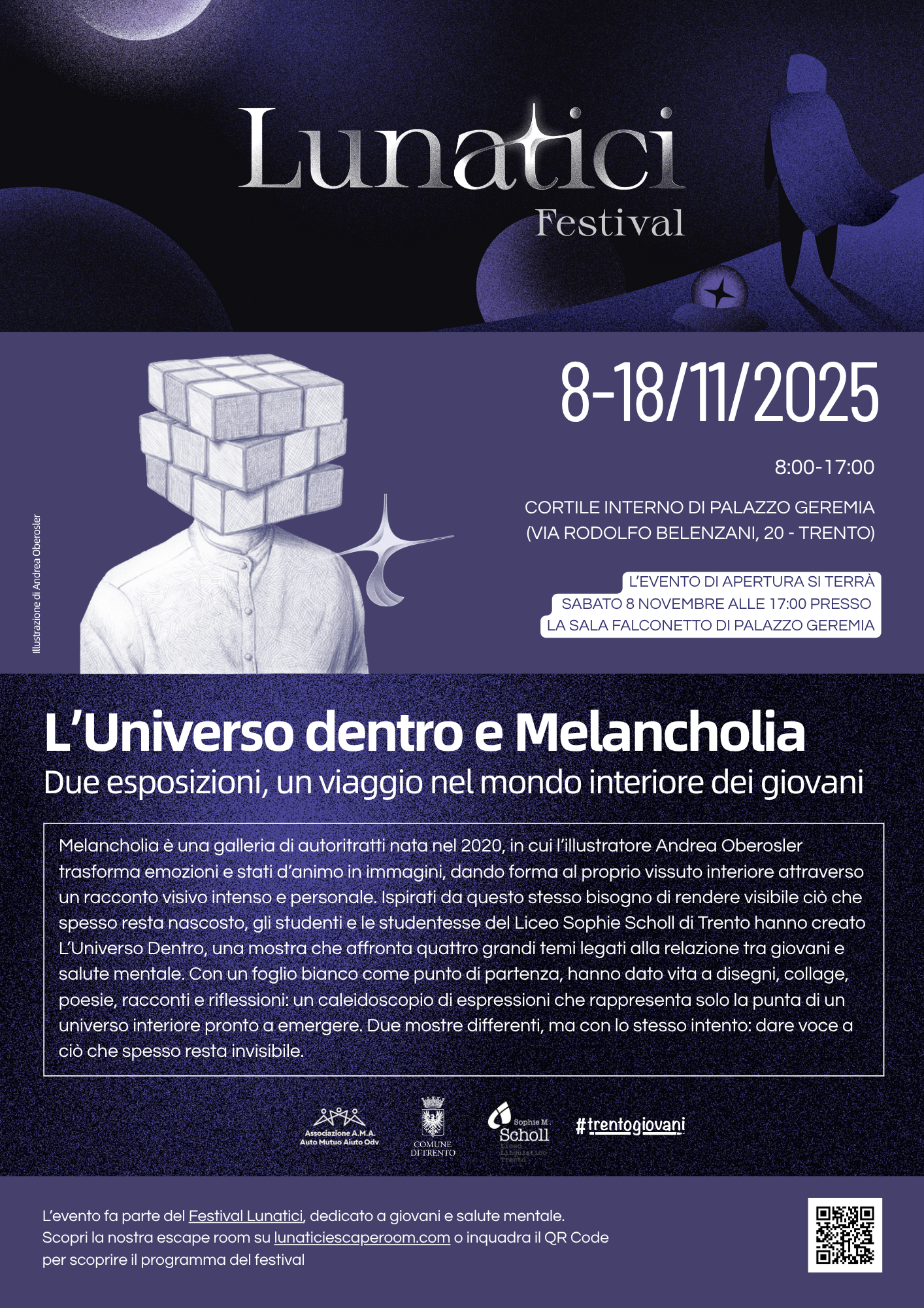 Ispirati da questo stesso bisogno di rendere visibile ciò che spesso resta nascosto, gli studenti e le studentesse del Liceo Sophie Scholl di Trento hanno creato L’Universo Dentro: una mostra che affronta quattro grandi temi legati alla relazione tra giovani e salute mentale.