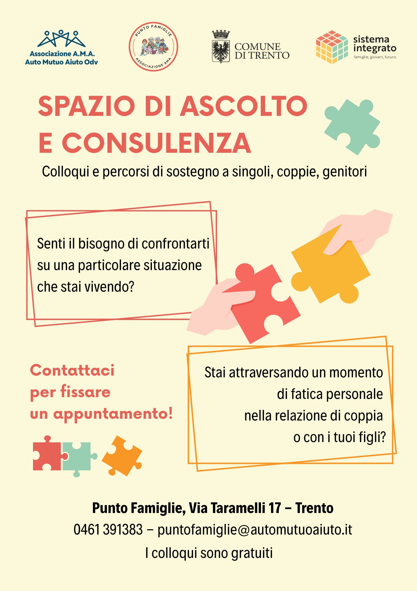 Gli incontri sono curati da tre realtà del Comune di Trento, che da anni lavorano in rete per promuovere la genitorialità e il benessere familiare: Punto Famiglie – ascolto e promozione; Koinè – Spazio Genitori Bambini; Centro Genitori e Bambini.